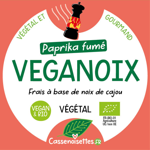 Noix de cajou* (origine non UEel ) 61,5g, eau 61g, graine de lupin, fécule de manioc, poudre d’ail, poudre d’oignon, sde guérande, huile de coco, paprika fumé